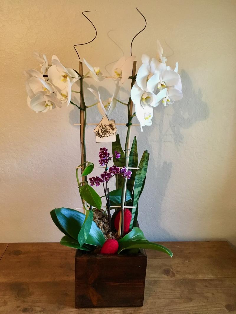 Beautiful, classy, and elegant. Hand-made wood box by Jen herself! Pricing starts at $80.Plant approximately 3' tall. Box dimensions are ~ 12" X 12"